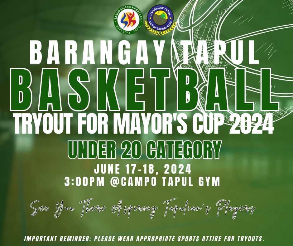 The Sangguniang Kabataan of Barangay Tapul, headed by SK Chairperson Jastine N. Jimenez and council, invites all aspiring Tapul basketball players ages 20 and below to join.