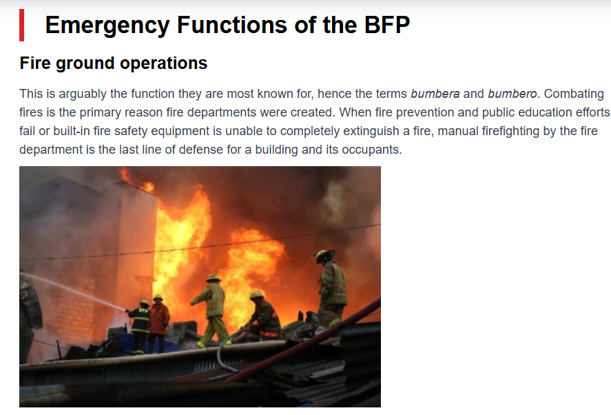 The article provides an overview of the BFPās fire safety regulations and explains how appropriate fire protection systems are selected based on building occupancy. It also highlights the active role of the BFP in ensuring public safety across the country through both emergency and non-emergency services.